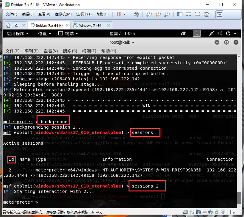使用background命令,是放在后台运行如果在需要运行,则需要使用sessions命令,sessions +id即可
